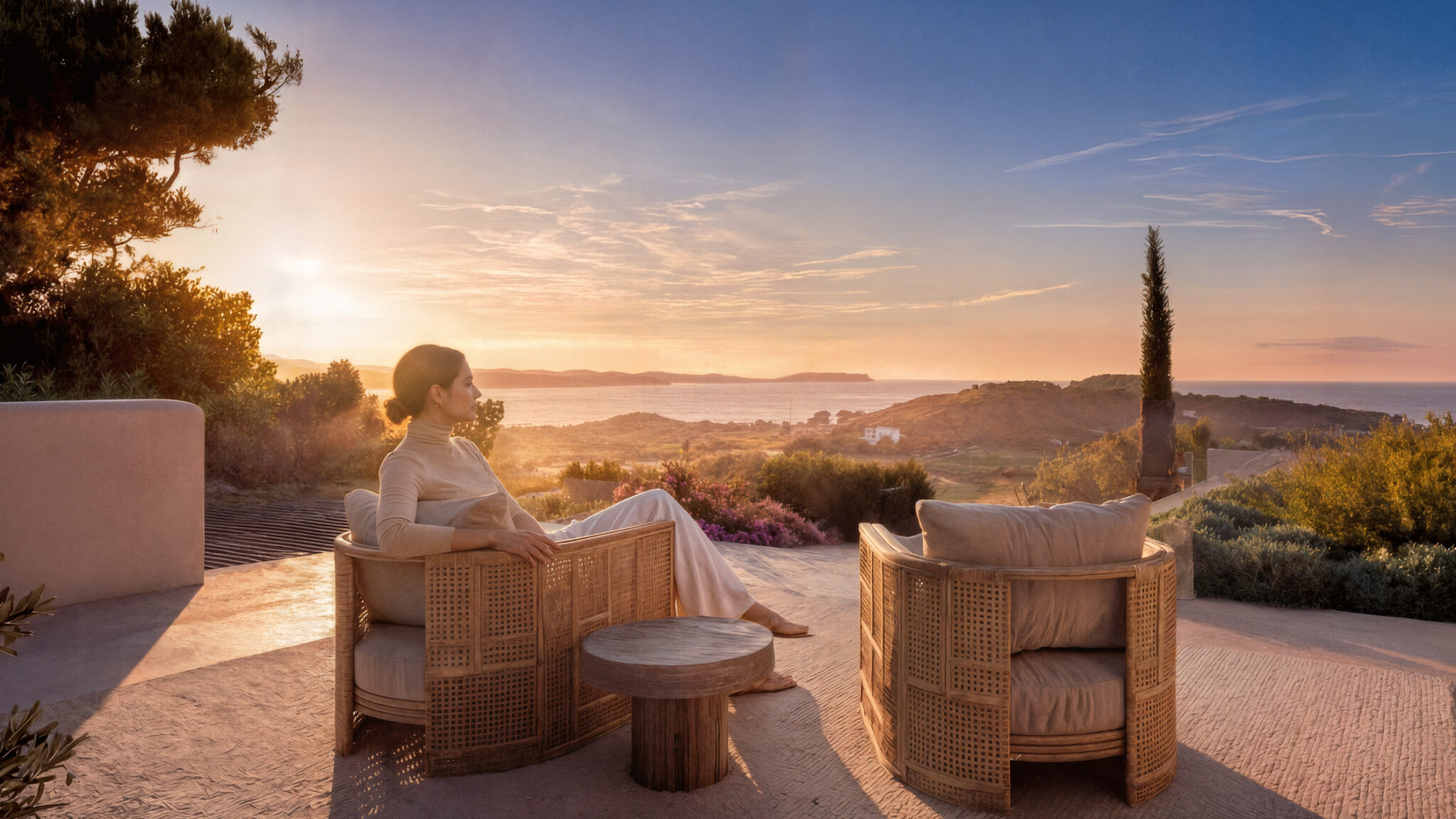 Villa Salma is located on the mountainside above the village of Cas Raymons. At the foot of it, you can find a beach of golden sands and crystalline waters that reflect bluish colours to create a dreamlike landscape. Surrounded by a green, peaceful and quiet environment where you can enjoy the beautiful sunsets that the white island has to offer.